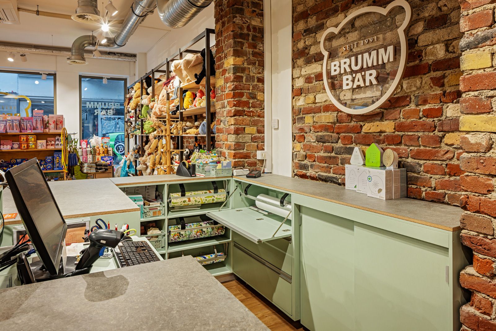 Die neue Gestaltung sollte keine Revolution, sondern viel mehr eine Evolution werden: Dem Brummbär nach 30 Jahren organischem Wachstum kein fertiges Konzept „überzustülpen“ sondern den ureigenen Charakter und Flair des Ladens behutsam in ein neues Konzept zu integrieren, war uns während der Planung und Umsetzung ein besonderes Anliegen.